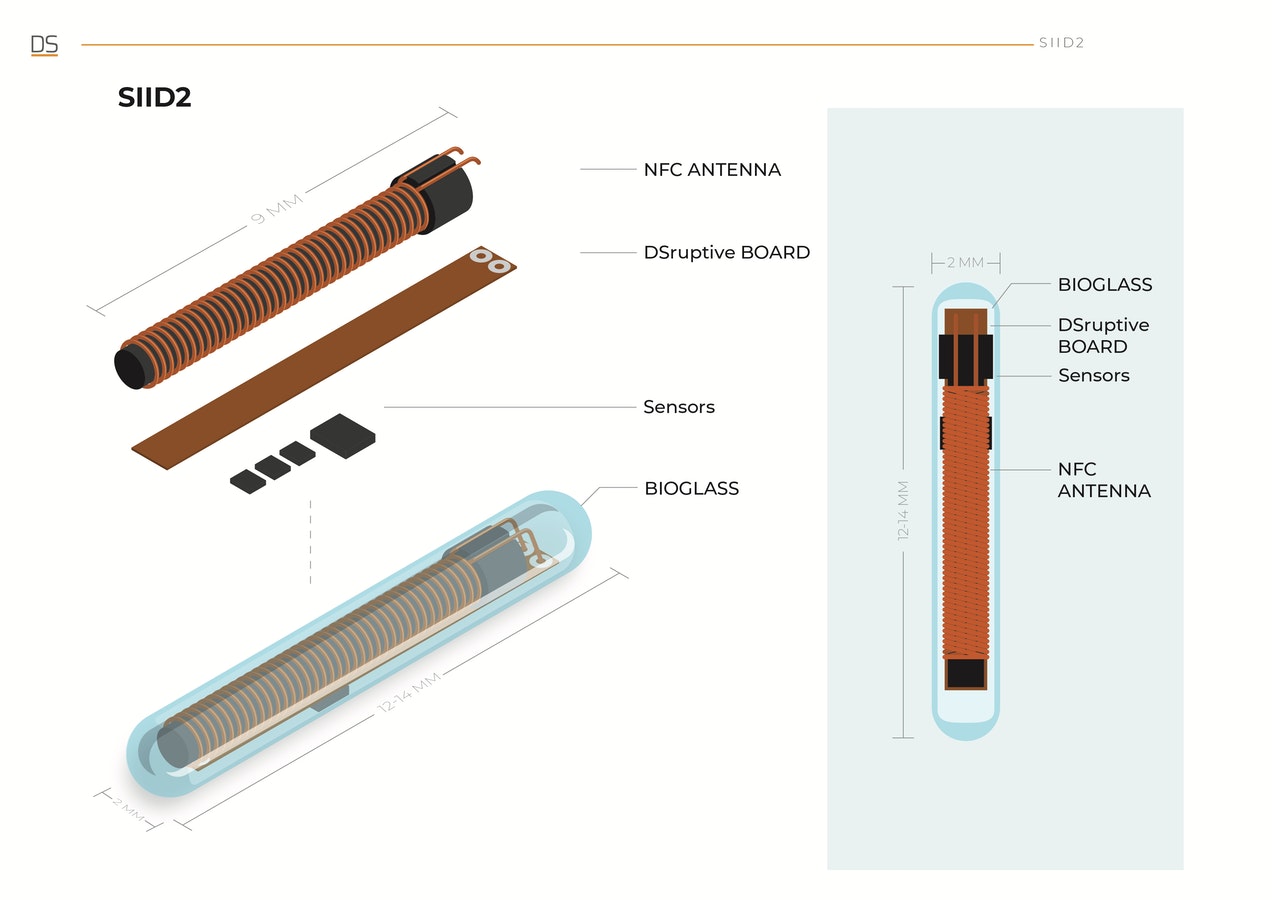 Внутри стеклянной капсулы находятся датчики. В клиническом исследовании, которое только что завершила компания DSRuptive, они использовали температурные датчики, но это могут быть и такие сенсоры, как акселерометры для измерения пульса или датчики для измерения насыщенности крови кислородом.