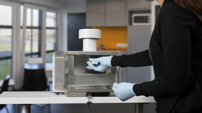 Установка размером с тостер собирает образцы аэрозолей и улавливает любые патогены с помощью съемного картриджа - с возможностью полной фильтрации воздуха в помещении площадью около 100 кв. метров менее чем за 20 часов. Картридж затем анализируется в лаборатории с использованием разработанного компанией Thermo Fisher набора для молекулярных тестов TaqPath COVID-19.