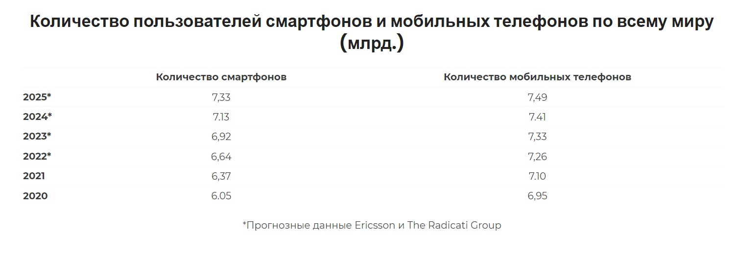 По данным Statista, текущее количество пользователей смартфонов в мире составляет 6,648 млрд человек. Выходит, у 83,96% населения Земли есть смартфон. Это значительно выше, чем в 2016 году, когда насчитывалось всего 3,668 млрд пользователей, то есть 49,40% мирового населения в тот период. По уровню распространенности смартфонов на душу населения Россия занимает седьмое место в мире (68,5%).
