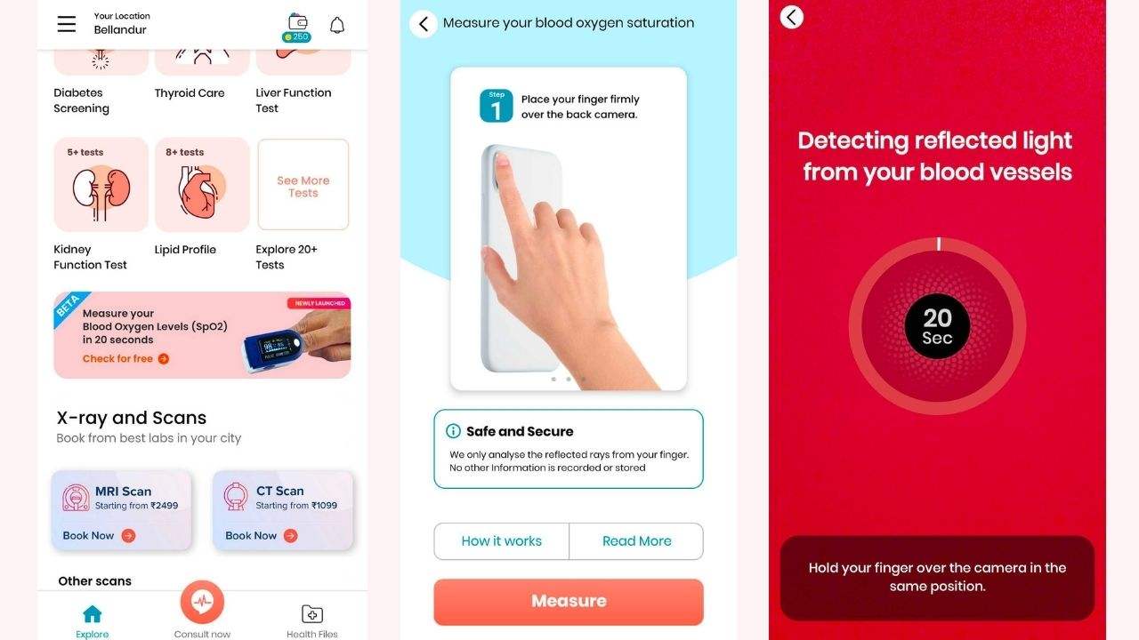 MFine предлагает пользователям самостоятельно измерить уровень насыщения крови кислородом, так же, как и Binah.ai, используя фотоплетизмографию — информацию в виде отраженного света, собираемую с кончика пальца или запястья пользователя.