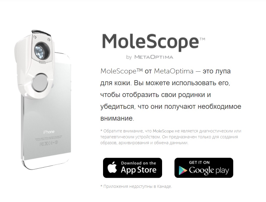 Miiskin, MoleMapper, UMSkinCheck, Skin Vision — все это приложения, которые позволяют проводить самообследование новообразований на коже, отслеживать рост родинок. MoleSkope также предлагает специальную лупу, которая крепится к смартфону. Фотографии, сделанные с ее помощью в приложении, отправляются дерматологу для получения предварительного заключения.