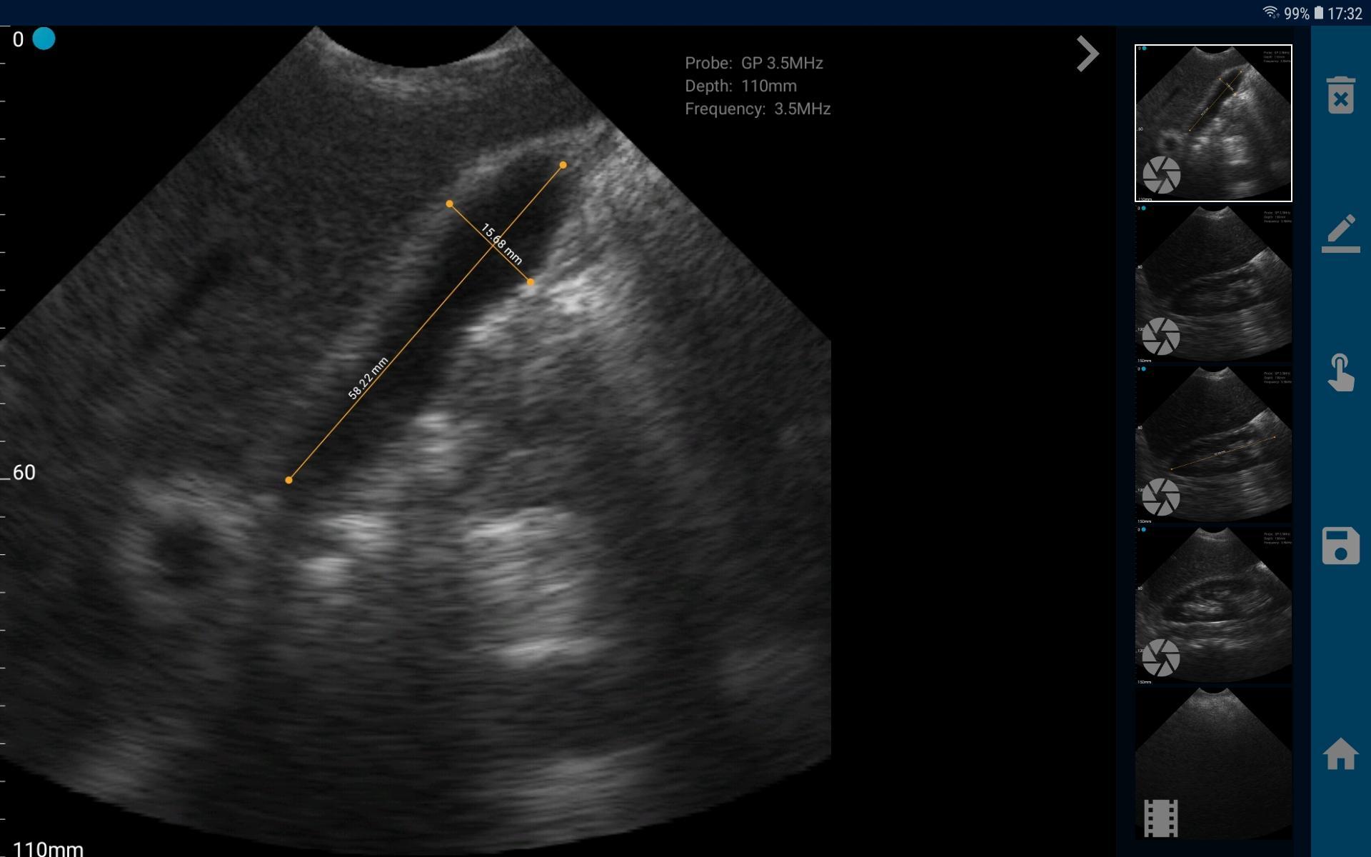 Компания разработала специальное программное обеспечение, которое позволяет врачам использовать дисплей смартфона или планшета для измерения соответствующих анатомических маркеров с точностью до пикселей. Технология имеет множество применений, в частности, система может использоваться для лечения пациентов в полевых условиях и для обеспечения автомобилей "Скорой помощи" диагностическими возможностями ультразвукового устройства, которые могут быть использованы по пути в больницу.