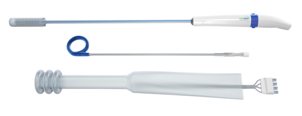 Созданное компанией Colospan устройство CG-100 представляет собой силиконовую оболочку, которая вводится в кишечный тракт через прямую кишку, не требуя хирургического вмешательства, и закрывает место восстановления соединения кишечного тракта. Эта оболочка призвана предотвратить или уменьшить контакт фекального материала с местом восстановления соединения, что позволяет избежать необходимости наложения стомы. Через 10 дней, когда риск утечки снижается, оболочка удаляется без дополнительной операции.