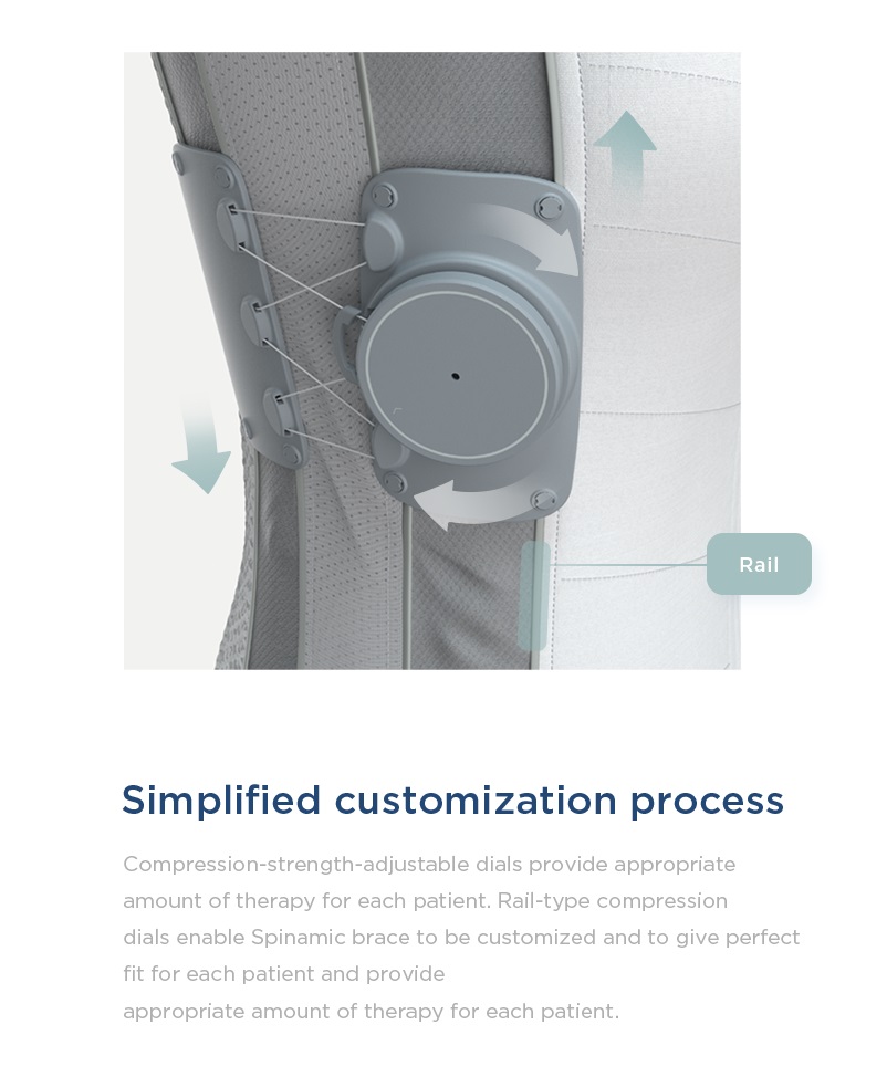 Корсеты создаются по алгоритму, принимающему во внимание результаты диагностики пациента, и изготовлены с учетом его индивидуальных особенностей. Эргономичный дизайн корсета и 3-точечная система давления обеспечивают оптимальное влияние для получения максимального эффекта коррекции осанки.