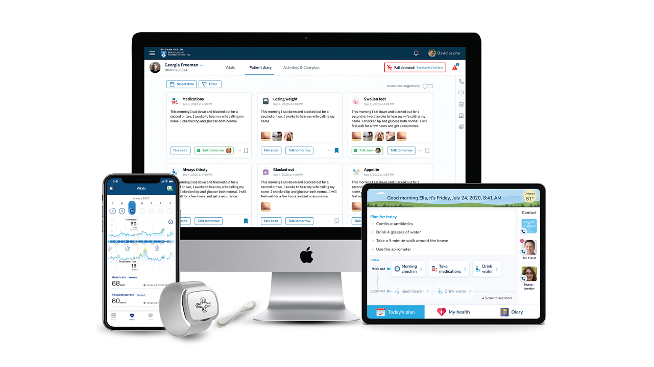 Данное решение позволяет врачам непрерывно контролировать несколько физиологических показателей пациентов с тяжелыми и сложными заболеваниями посредством носимых биосенсоров и медицинских устройств. Удаленный мониторинг дополняется посещениями на дому бригадой по уходу за пациентами.