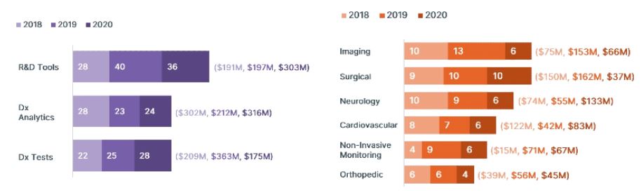 Хотя компании, занимающиеся медицинской диагностикой и инструментами, отстают от других секторов здравоохранения, Великобритания продолжает оставаться горячей точкой для сделок в этой области с 20 сделками посевного финансирования/серии А.