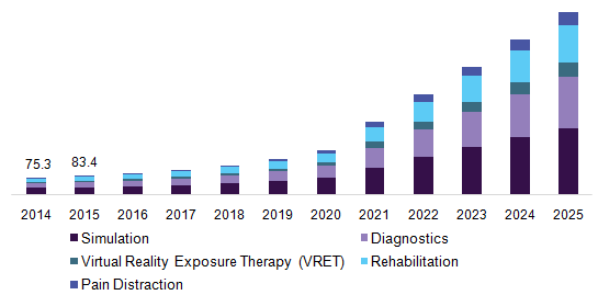 По данным исследования Healthcare AR VR Market: Global Industry analysis 2013–2017 and Forecast 2018–2026 компании Persistence market research, наибольшую долю рынка займут приложения для обучения врачей и медперсонала, а также решения для планирования и проведения хирургических вмешательств.