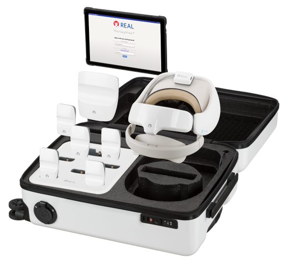 Система располагается в компактном корпусе и не требует внешней инфраструктуры для своей работы. Аппаратное обеспечение системы включает в себя планшет, используемый терапевтом для управления и мониторинга деятельности, а также 6 носимых датчиков тела и VR-гарнитуру, которую носит пациент.
