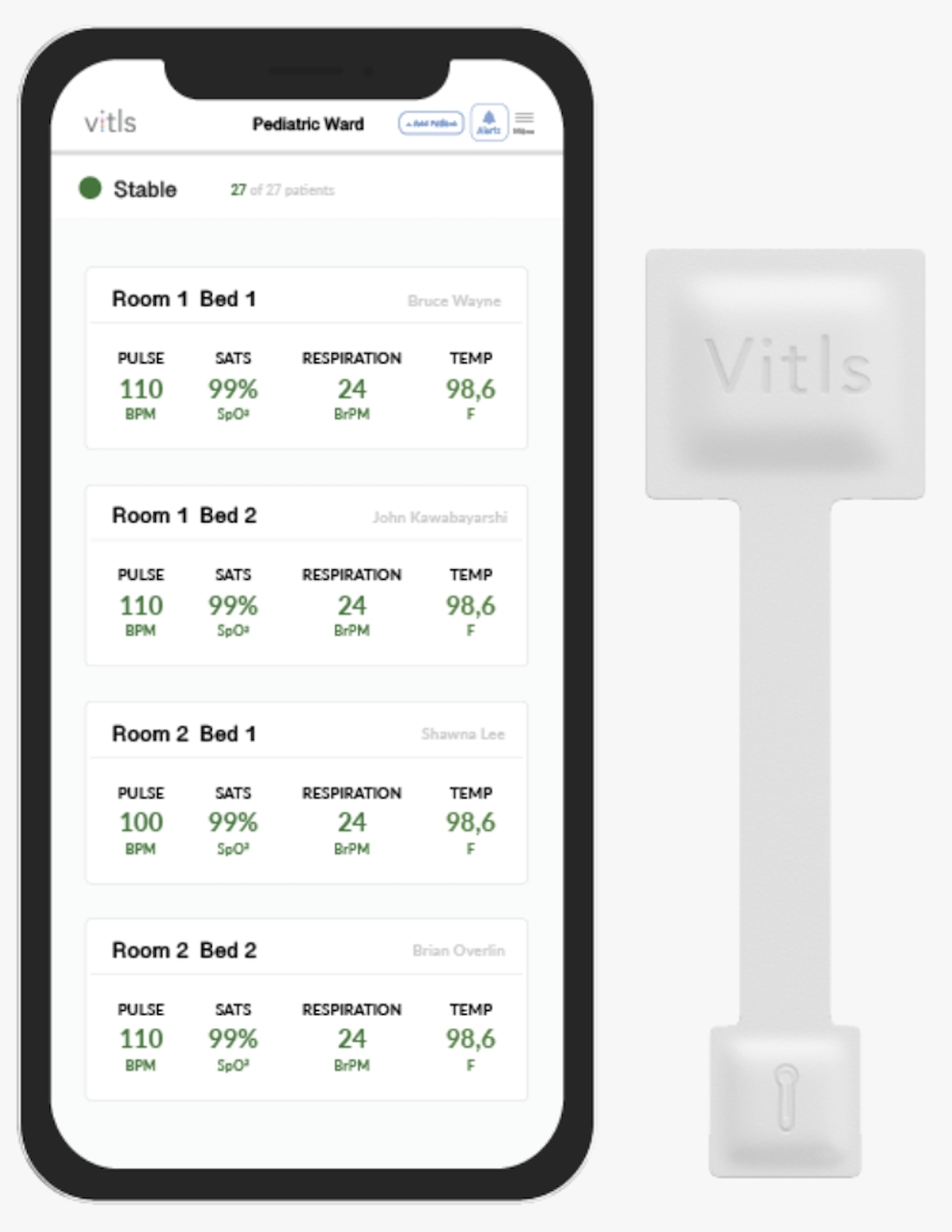 Информация сохраняется и отсылается в больничные информационные системы и приложение Vitls, так что медицинские работники могут следить за жизненными показателями своих пациентов в режиме реального времени, где бы они ни находились.