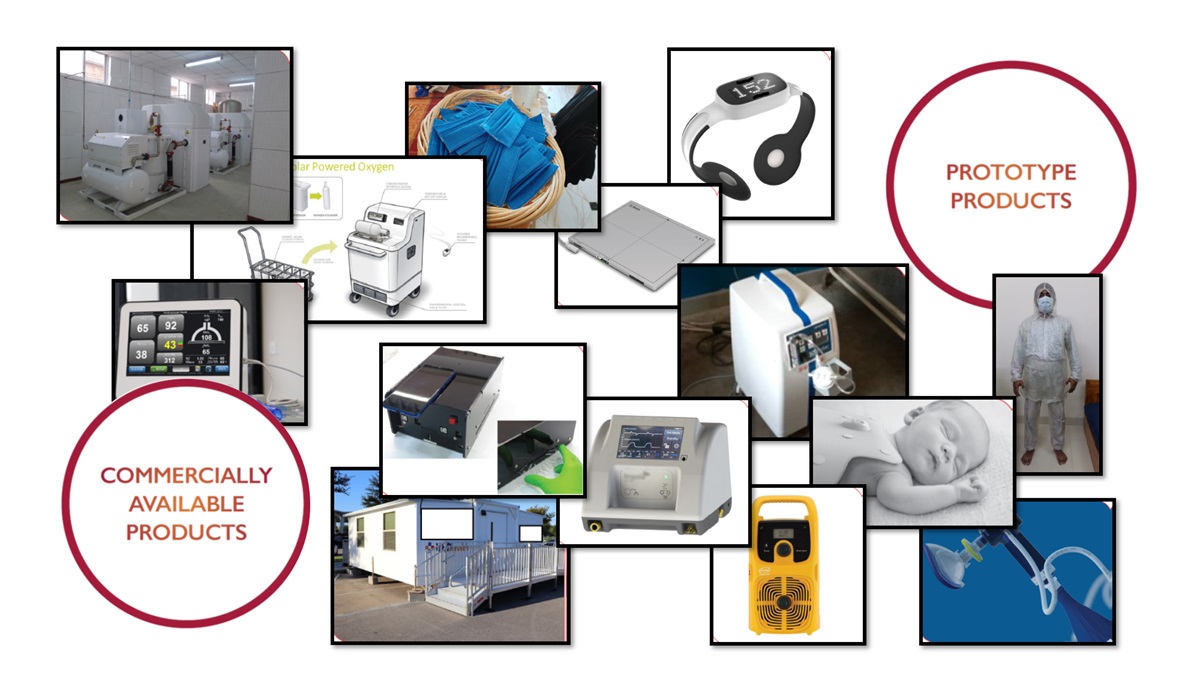 В перечень включены самые разные технологии и продукты, начиная от окрашенной отбеливающей добавки, которая позволяет невооруженным глазом определить нестерилизованные поверхности и предметы, и заканчивая таким оборудованием, как портативная система мониторинга дыхания и аппараты искусственной вентиляции легких, которые можно использовать там, где электричество недоступно или нестабильно.