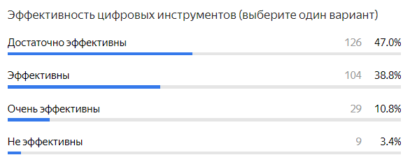 Надо отметить, что только ответ на первый вопрос не дает ценных знаний, а лишь знакомит нас со срезом. Ответившие в массе своей работают в организациях с высоким уровнем цифровой зрелости и ежедневно сталкиваются в своей работе с применением технологий.