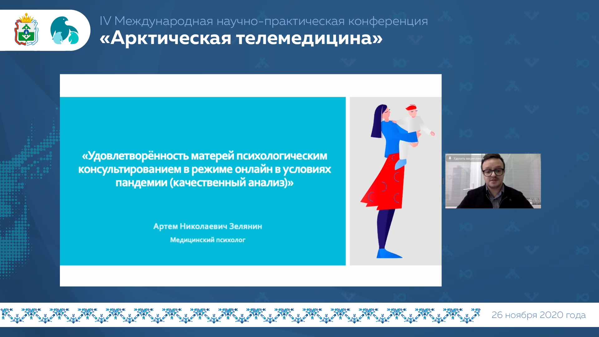 26 ноября 2020 года в онлайн формате состоялась IV Международная научно-практическая конференция «Арктическая телемедицина». Целью конференции было обсуждение вопросов использования информационных технологий для обеспечения доступности и качества медицинской помощи в условиях Крайнего Севера (Арктической зоны).