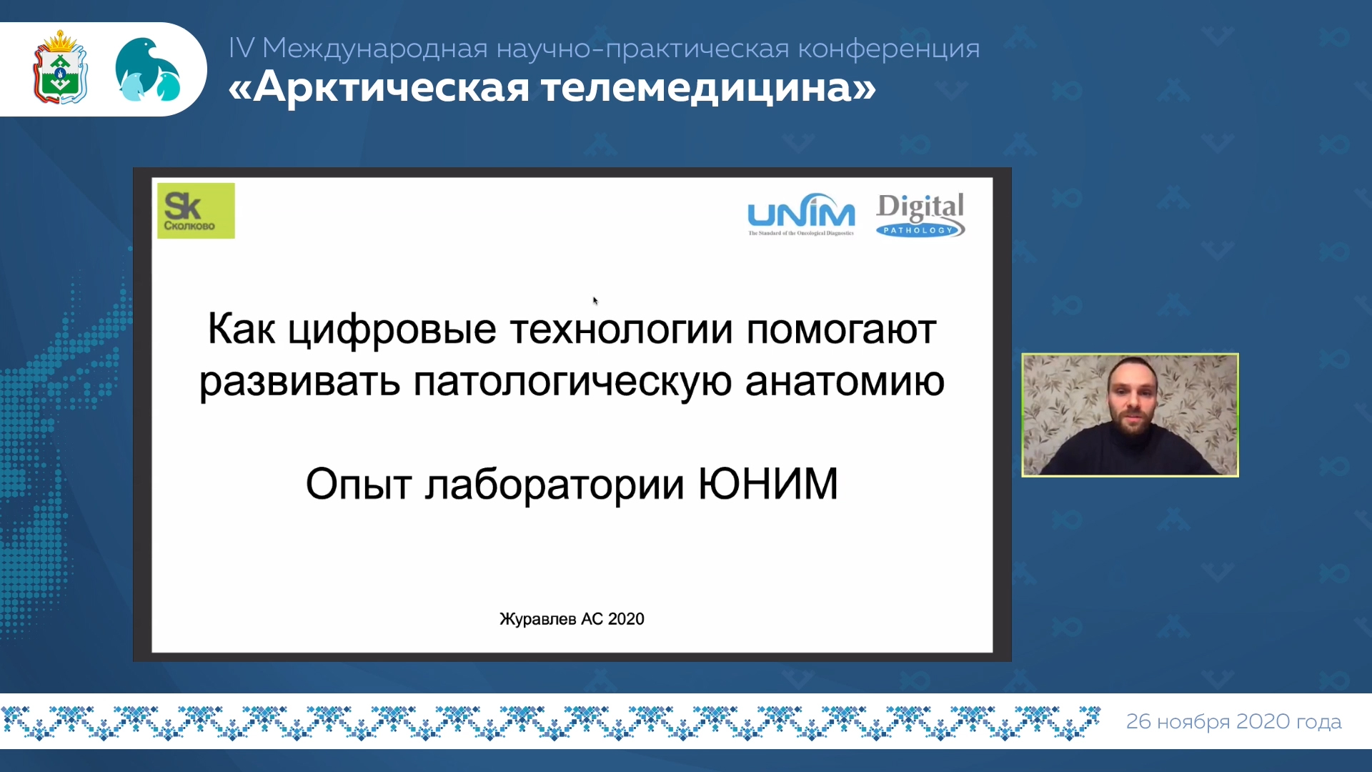 26 ноября 2020 года в онлайн формате состоялась IV Международная научно-практическая конференция «Арктическая телемедицина». Целью конференции было обсуждение вопросов использования информационных технологий для обеспечения доступности и качества медицинской помощи в условиях Крайнего Севера (Арктической зоны).