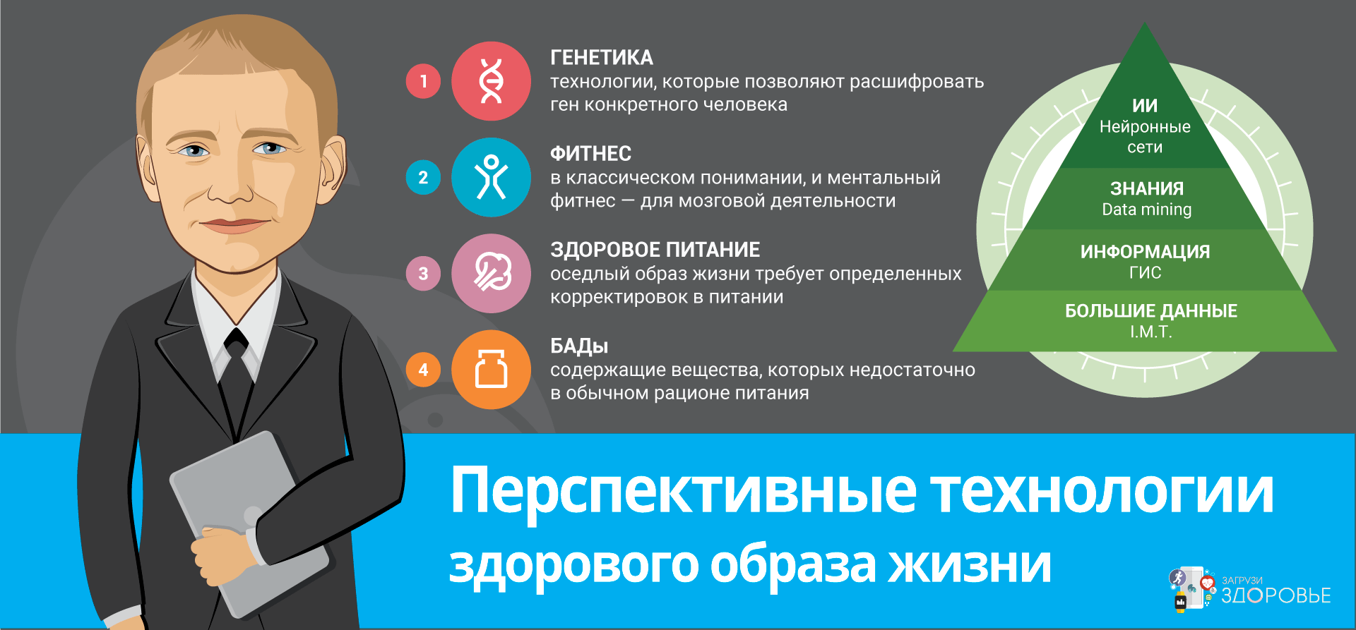 Третий вектор - здоровое питание. Современный мир, численность которого перешагнула отметку в 7 миллиардов человек, требует новых технологий для обеспечения необходимым питанием столь высокого числа людей. Важно отметить, что в целом человек остановился в своей эволюции 70 тысяч лет назад, тогда люди вели образ жизни, основанный на собирательстве и охоте, вследствие чего привыкли к определенным продуктам, доступным на тот момент. Сейчас же мы ведем оседлый образ жизни, мало двигаемся, а потребляем всё больше переработанных продуктов, богатых углеводами и жирами. Поэтому такой образ жизни однозначно требует определенных корректировок в питании.