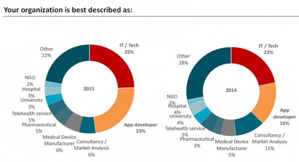 Среди разработчиков преобладают технологические компании (52%), которые в этом году ставят себе основным приоритетом включение в команду медицинских специалистов. В этом году компаний, которые уже имеют в своем составе профессионалов в сфере медицины, стало на 10% больше, чем в 2014 году.