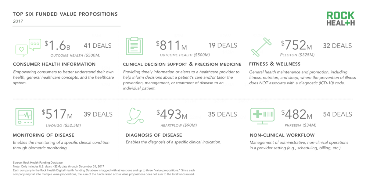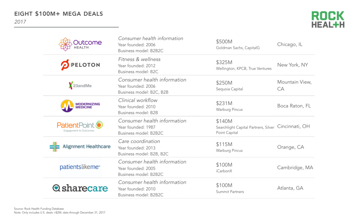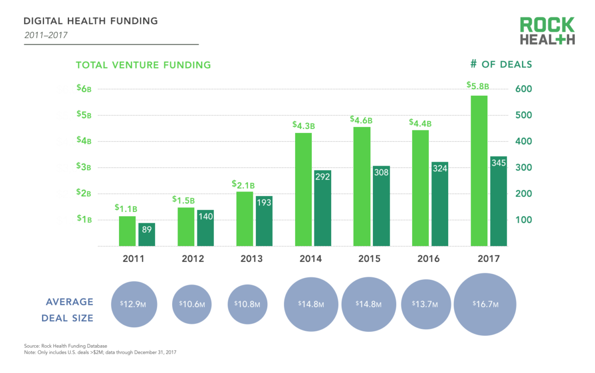 Всего начиная с 2010 года Rock Health зарегистрировала $23 млрд инвестиций в отрасль цифровой медицины.