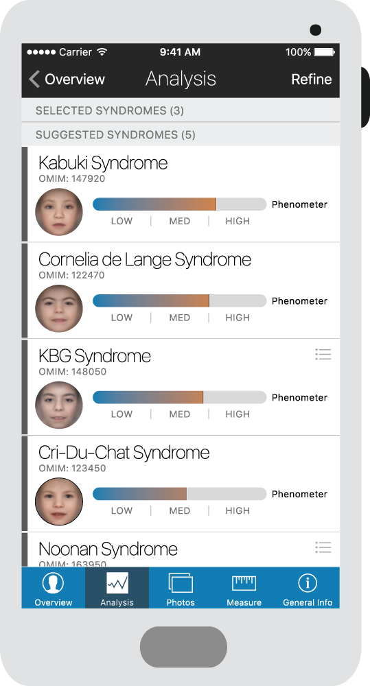 Аналогичное приложение было разработано американскими учеными из Института детской хирургии имени Шейха Зайеда. В этом продукте используется цифровое программное обеспечение для анализа лица, позволяющее определить у ребенка наличие генетического заболевания - синдрома Ди Джорджи, характеризующегося многочисленными пороками развития.