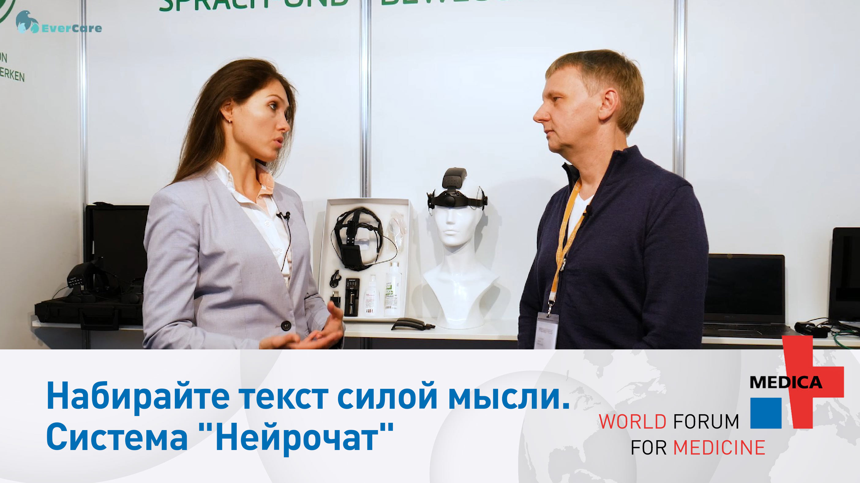 На этом мероприятии мы познакомились с разработкой российской компании НЕЙРОЧАТ, которая представляет собой коммуникационную систему на базе интерфейса мозг-компьютер. Эта система, которая состоит из головного устройства на базе энцефалографа и специализированного программного обеспечения, создаёт возможность сетевого общения для людей, не способных говорить и двигаться, с родными, медицинским персоналом, друзьями и всем миром. Это люди с такими диагнозами, как ДЦП, боковой амиотрофический склероз, инсульт, рассеянный склероз и пациенты с различными нейротравмами.