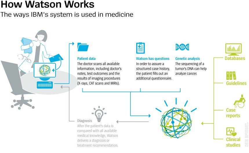 Немецкий журнал Der Spiegel выпустил статью, где отмечает плохие перспективы IBM Watson в германской системе здравоохранения, упомянув хорошо документированные провалы Watson в больницах Марбурга и Гессена. В частности, глава компании Rhön-Klinikum AG, которой принадлежит университетская больница в Марбурге, в феврале этого года так описал эту проблему: