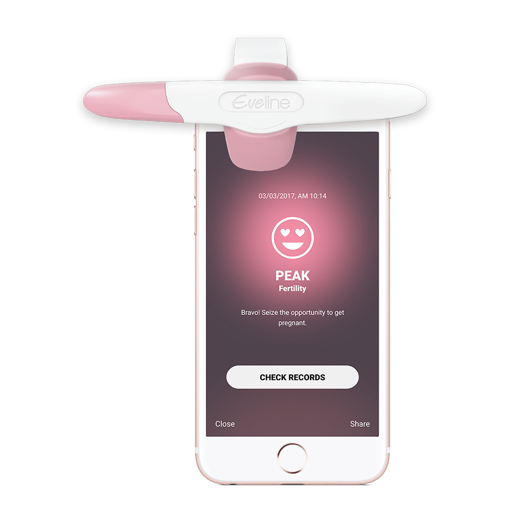 Eveline использует простое, незаметное устройство с зажимом для телефона и тестовые полоски, похожие на стандартный тест на беременность, которые есть в каждой российской аптеке. Зажим используется для того, чтобы закреплять тестовые полоски перед камерой смартфона, где соответствующее приложение может автоматически измерять уровень фертильности за счет анализа изменения цвета полосок с точностью до мельчайших деталей.