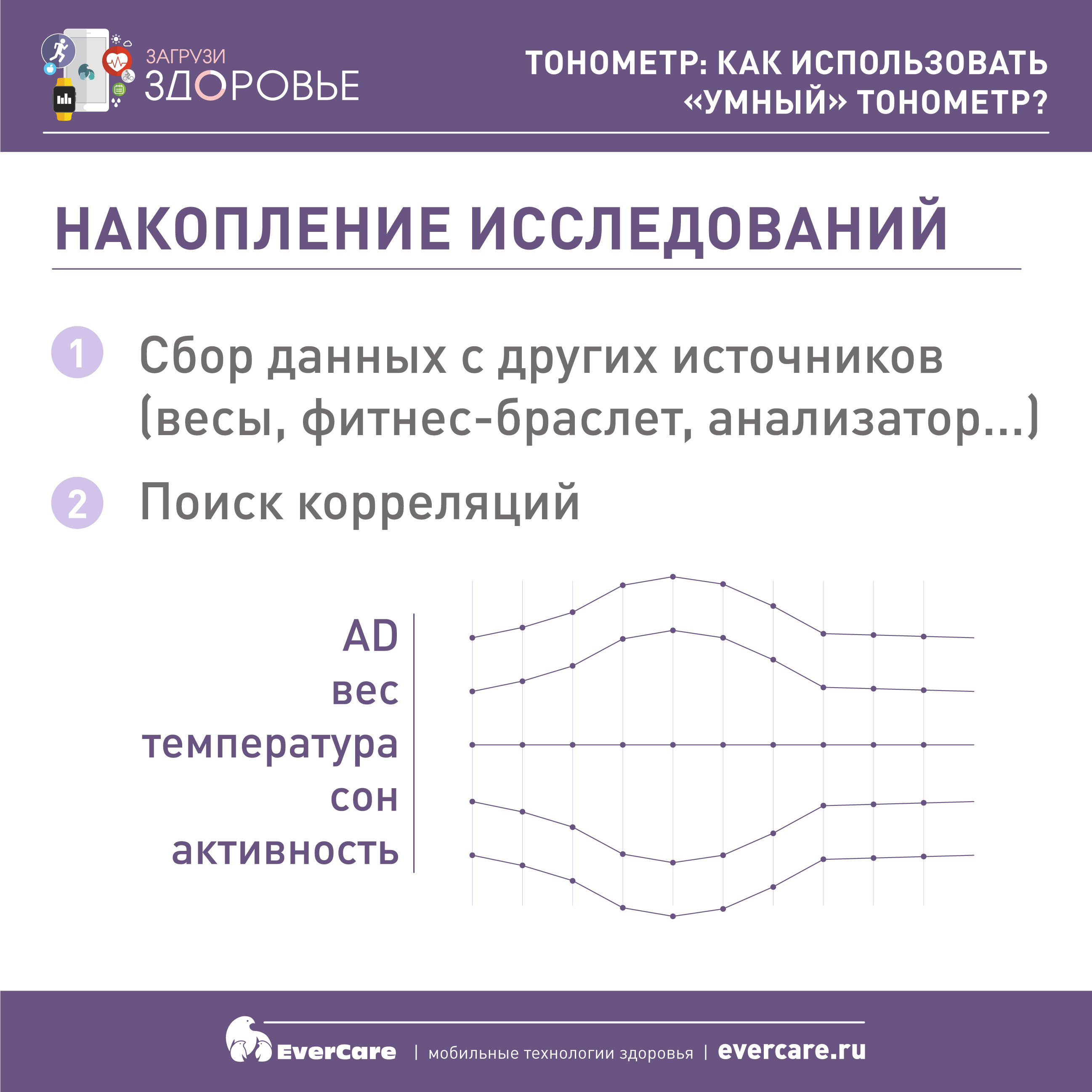 Таким образом, благодаря такому умному прибору, как тонометр, и сочетанию различных других измерительных приборов – весов, анализаторов, метеостанций, множества других приборов – можно заметить определенные корреляции и постараться повлиять каким-то образом на имеющееся состояние.