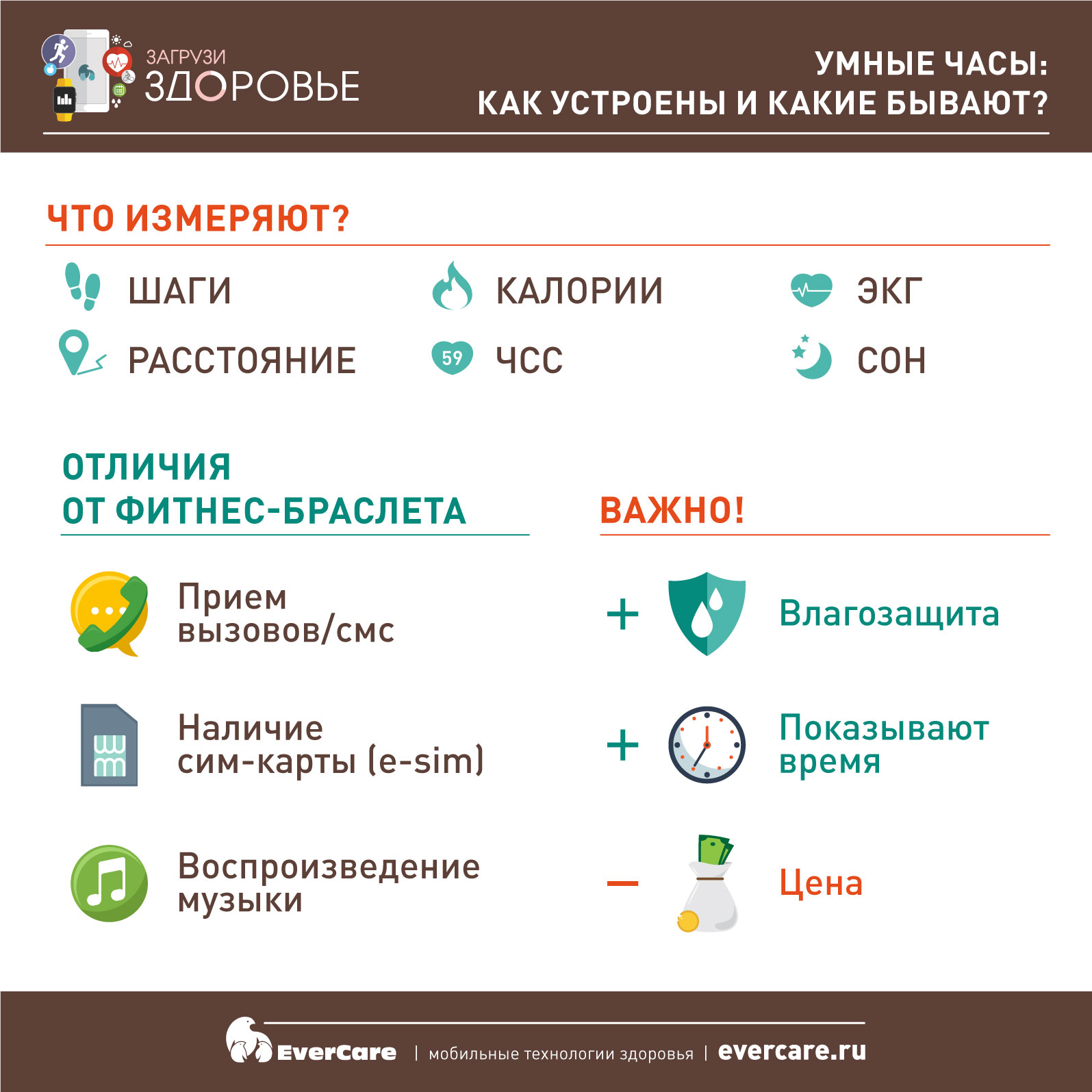 Новая серия проекта «Загрузи здоровье» о гаджетах и устройствах для мониторинга здоровья будет посвящена «умным» часам. Ранее нами говорилось об «умных» фитнес-браслетах, или трекерах, которые имеют акселерометр, гироскоп, что позволяет отслеживать активность перемещения в пространстве. Существуют более сложные с технической точки зрения фитнес-браслеты, которые могут иметь модуль электрокардиограммы, модуль фотоплетизмографии, модуль GPS и даже бесконтактную плату NFC.