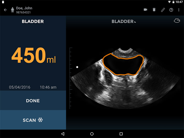 Это ультразвуковое устройство может использоваться для получения 256 "срезов" мочевого пузыря, которые затем используются для определения границ органа и просмотра его на экране. По заявлению компании-производителя, поскольку обычные сканеры мочевого пузыря используют только восемь срезов, добавление дополнительных измерений позволяет сделать определение общего объема намного более точным (± 10%, ± 10 мл). Используя разработанные компанией алгоритмы компьютерного зрения, устройство может активно распознавать трехмерные контуры мочевого пузыря даже у полных или других сложных пациентов.