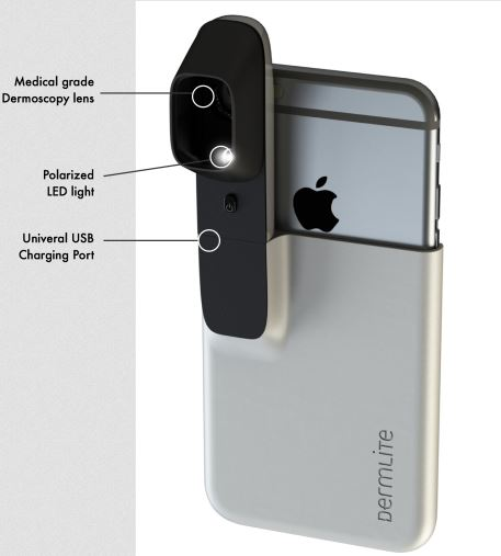 Компания iDoc24 разработала подключенный к смартфону дерматоскоп DermLite HÜD. Пользователь фотографирует родинки и отправляет их в приложение First Derm на смартфоне. Программа позволяет пользователям анонимно переслать фотографию лицензированному дерматологу, который в течение 24 часов предоставляет ответ. Это сообщение содержит предварительный диагноз, показывающий, нужно ли пользователю немедленно обратиться к врачу или все нормально и до следующего осмотра можно не беспокоиться. При этом пользователя просят прислать две фотографии - одну снятую с близкого расстояния, другую с несколько большего, а также предоставить текстовое описание состояния своей кожи. Консультация обходится пользователю в $40 за каждую "кожную проблему".