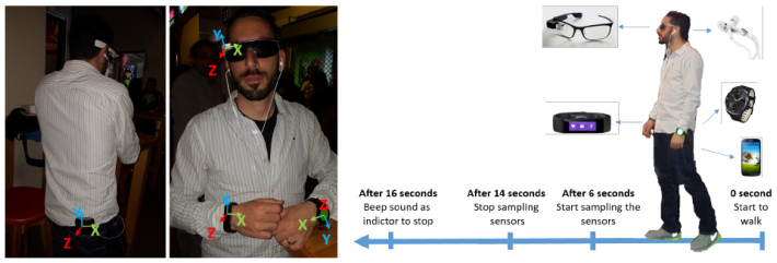 Система состоит из смартфона Samsung Galaxy S4, очков Google Glass, часов LG G-watch и трекера активности Microsoft Band. Каждый из участников эксперимента сначала записал свои базовые данные походки и лишь затем отправился в бар. После выхода из которого были проведены новые измерения.