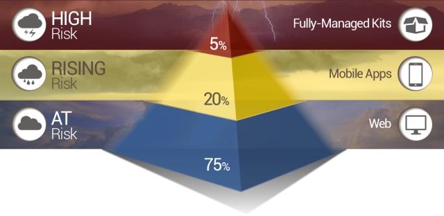 Больные, относящиеся к категории "возрастающий риск", к которым Vivify относит примерно 20% пациентов, получают систему на базе смартфона. В состав комплекта входит приложение, которое может работать на всех моделях популярных смартфонов, по утверждению компании. Медицинские компании могут использовать такую смартфонную систему для сбора данных, отправления разного рода медицинских опросов и заданий, а также для проведения виртуальных визитов путем видеоконференции пациент-врач. Пациенту также предоставляется доступ через смартфон к обучающим видео.