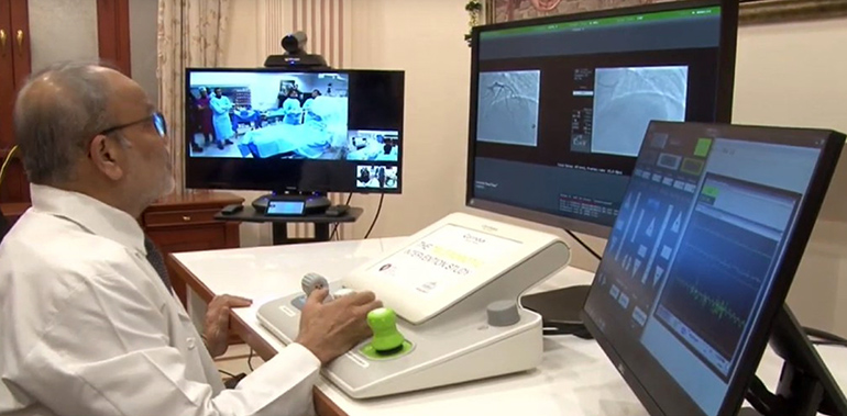 Индийские врачи продемонстрировали возможность дистанционного выполнения врачом минимально инвазивной процедуры чрезкожной операции на коронарных сосудах в реальных условиях. При этом была использована разработанная компанией Corindus Vascular Robotics роботизированная система CorPath GRX, система управления которой находилась на расстоянии примерно 30 км от места нахождения пациента.