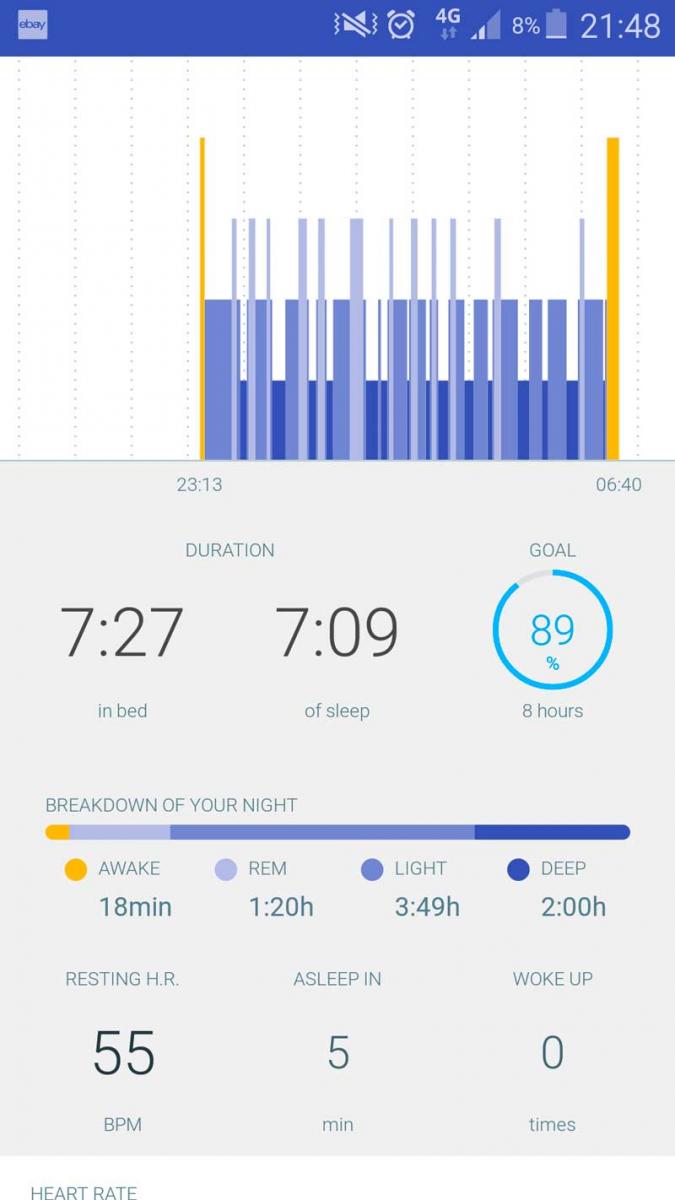 Функция контроля нарушений дыхания использует датчики, измеряющие частоту дыхания, частоту сердечных сокращений, движение и храп для регистрации любых событий в течение ночи. Эти нарушения помечаются в хронологическом порядке, оцениваются по шкале от высокого до низкого уровня и сопровождаются образовательным контентом, относящимся к области нарушений дыхания, которые могут потребовать обращения к врачу.