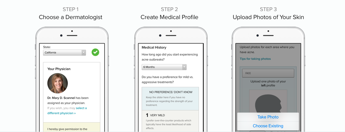 Во многих странах, даже в таких как США, время ожидания приема дерматолога может длиться несколько недель или даже месяцев, что становится невыносимым для людей с острыми и хроническими проблемами кожи. Американская компания YoDerm старается изменить эту ситуацию. Заплатив $59, пациент может отослать описание своих проблем и фотографии кожи через онлайновую платформу компании, получить консультацию сертифицированного дерматолога и купить необходимые ему препараты с помощью рецепта, который будет отослан в ближайшую к нему аптеку. И все это в течение 24 часов.